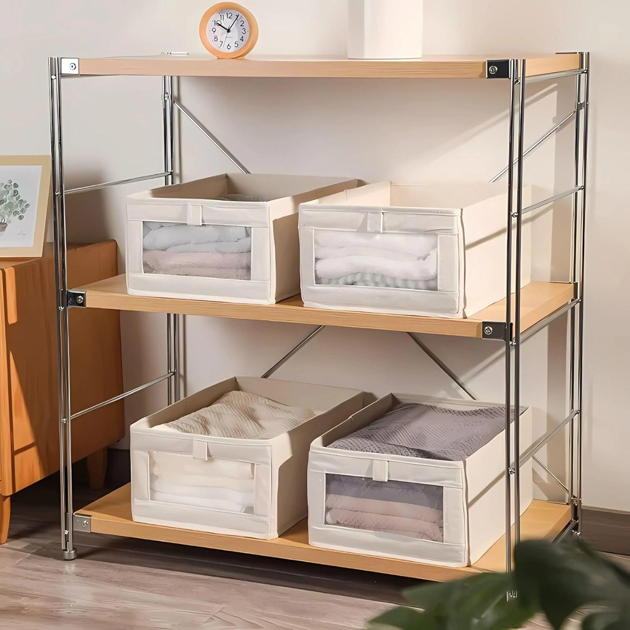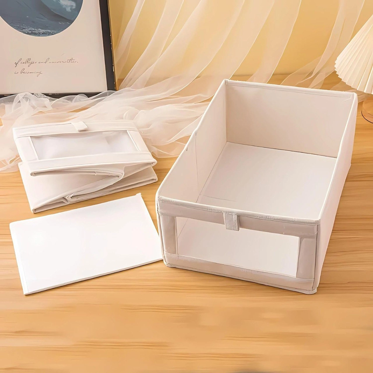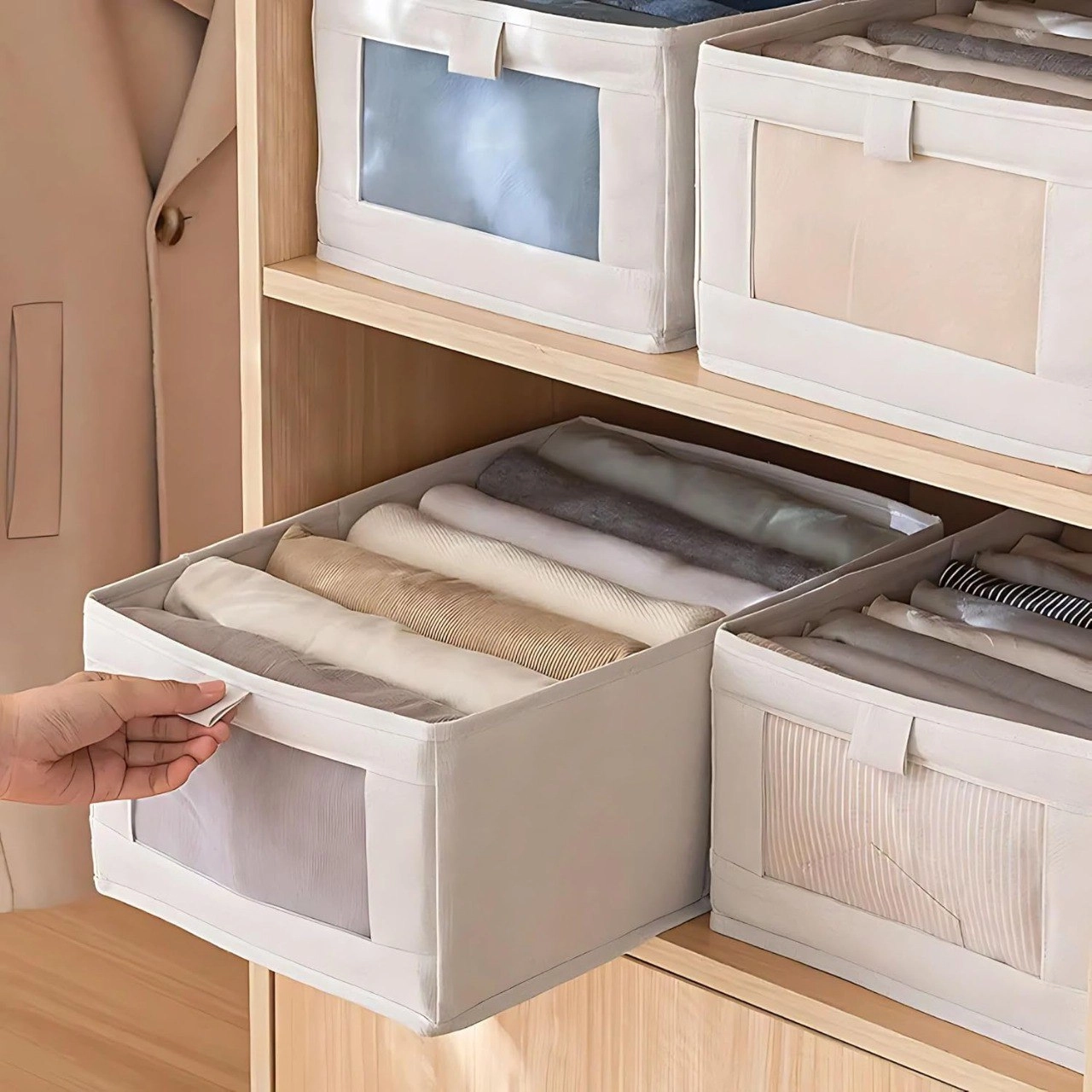 Key Features: - Space‑Saving Collapsible Design — folds flat when not in use; ideal for small spaces, apartments, dorms and offices. ↕️ - Multipurpose Home Organization — perfect for seasonal clothing, toys, books, blankets, bedding and other household essentials. 🧸🛏️📚 - Stylish & Versatile — neutral beige with clear window for quick identification; wardrobe‑friendly for a neat, organized look. ✨